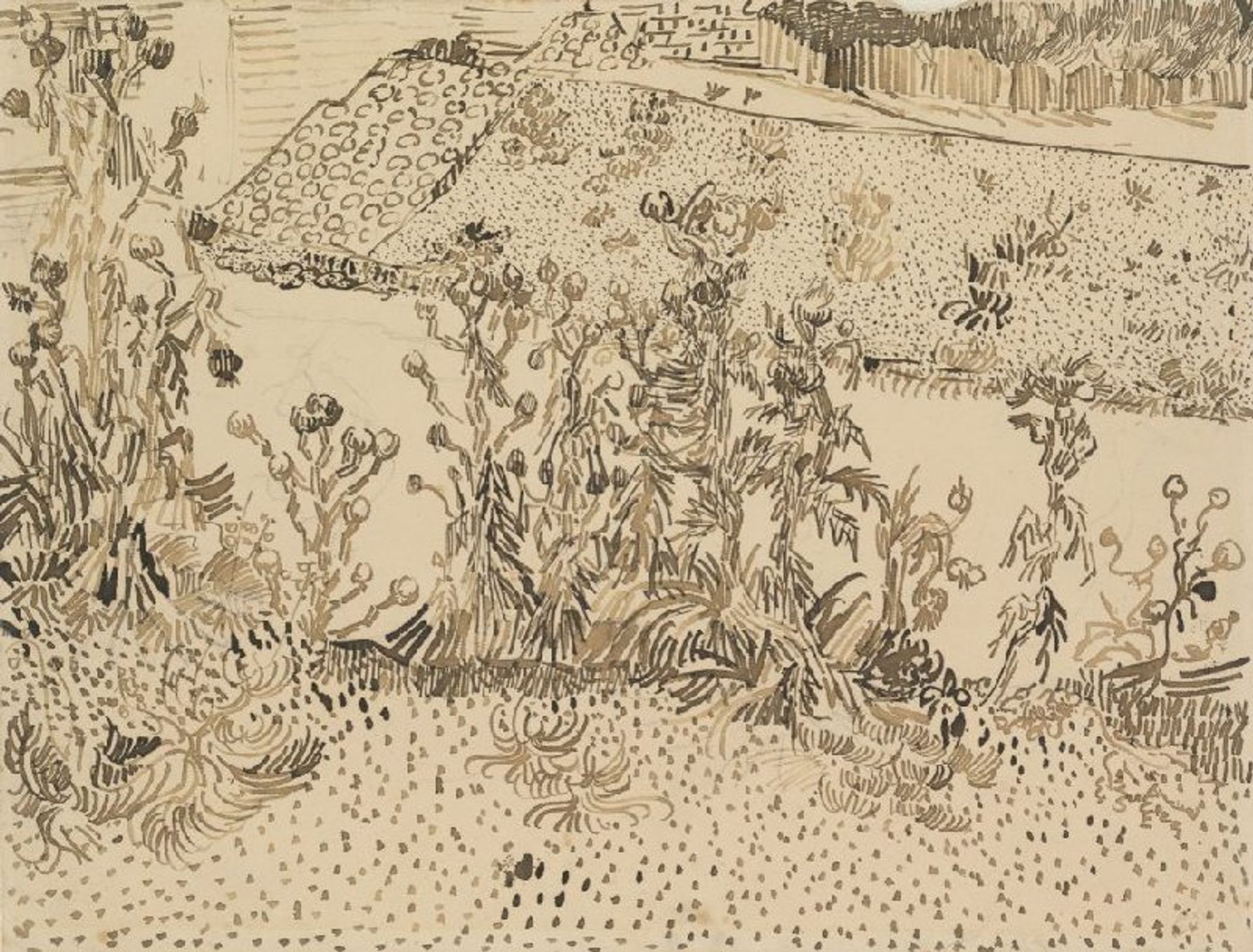 These are: The Entrance to the Pawn Bank, The Hague (March 1882, Van Gogh Museum, Amsterdam), Thatched Roofs (March 1884, Tate, London), Peasant Woman carrying Wheat in her Apron (July-August 1885, Kröller-Müller Museum, Otterlo), Bust of a young Warrior (March-May 1886, Van Gogh Museum) and Thistles by the Roadside (August 1888, Van Gogh Museum).
