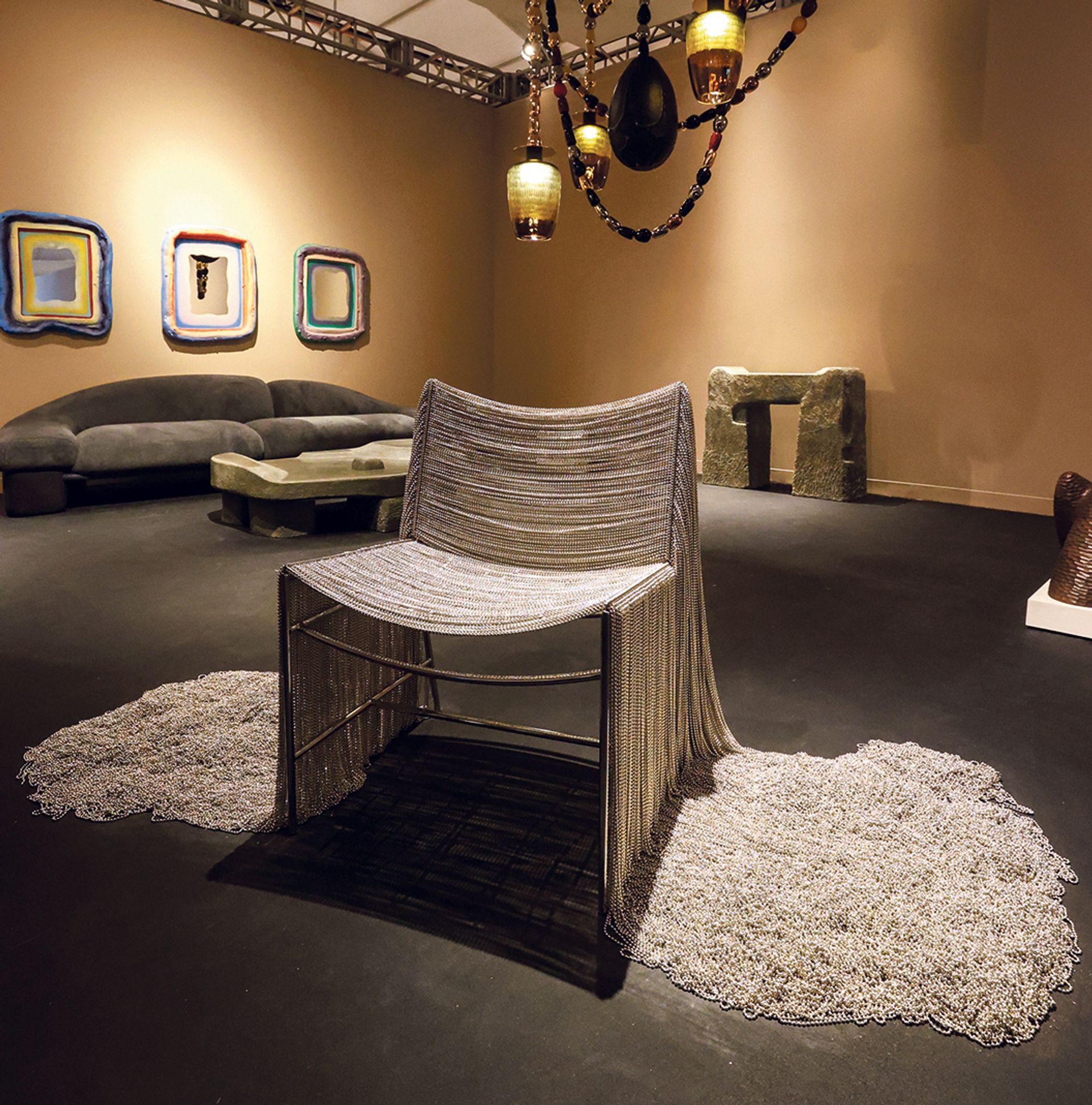 The New York gallery Friedman Benda is showing a chair dripping in chains by the Mexican architect Frida Escobedo, who was behind the new modern and contemporary galleries at the Metropolitan Museum of Art in New York. Her Creek Chair (2022) is inspired by the flow of water and the work of the late Cuban American artist Ana Mendieta, who explored themes involving water in her video work.