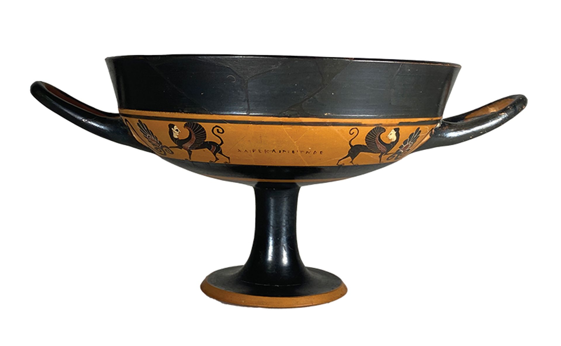 A Greek drinking cup, believed to have been created in the 6th century BC, depicts two sphinxes in the wrong pose Carabinieri for the Protection of Cultural Heritage (TPC)