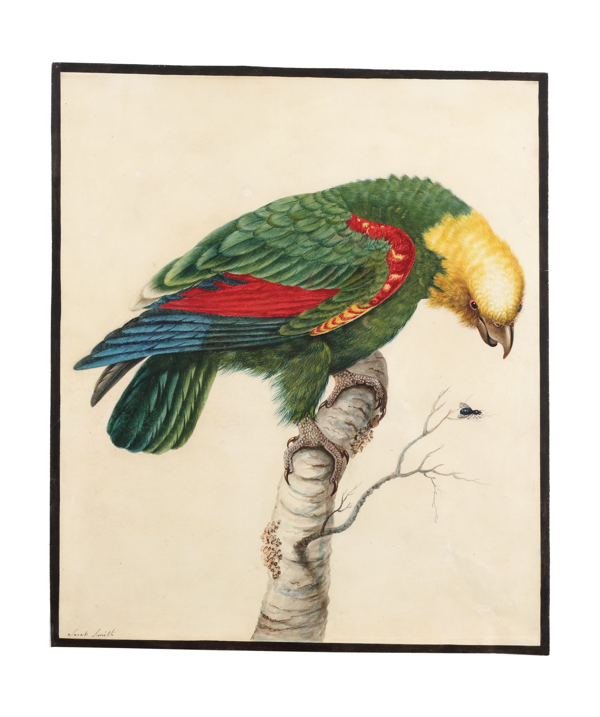 One of Sarah Stone’s ornithological watercolors, on display at Finch and Co