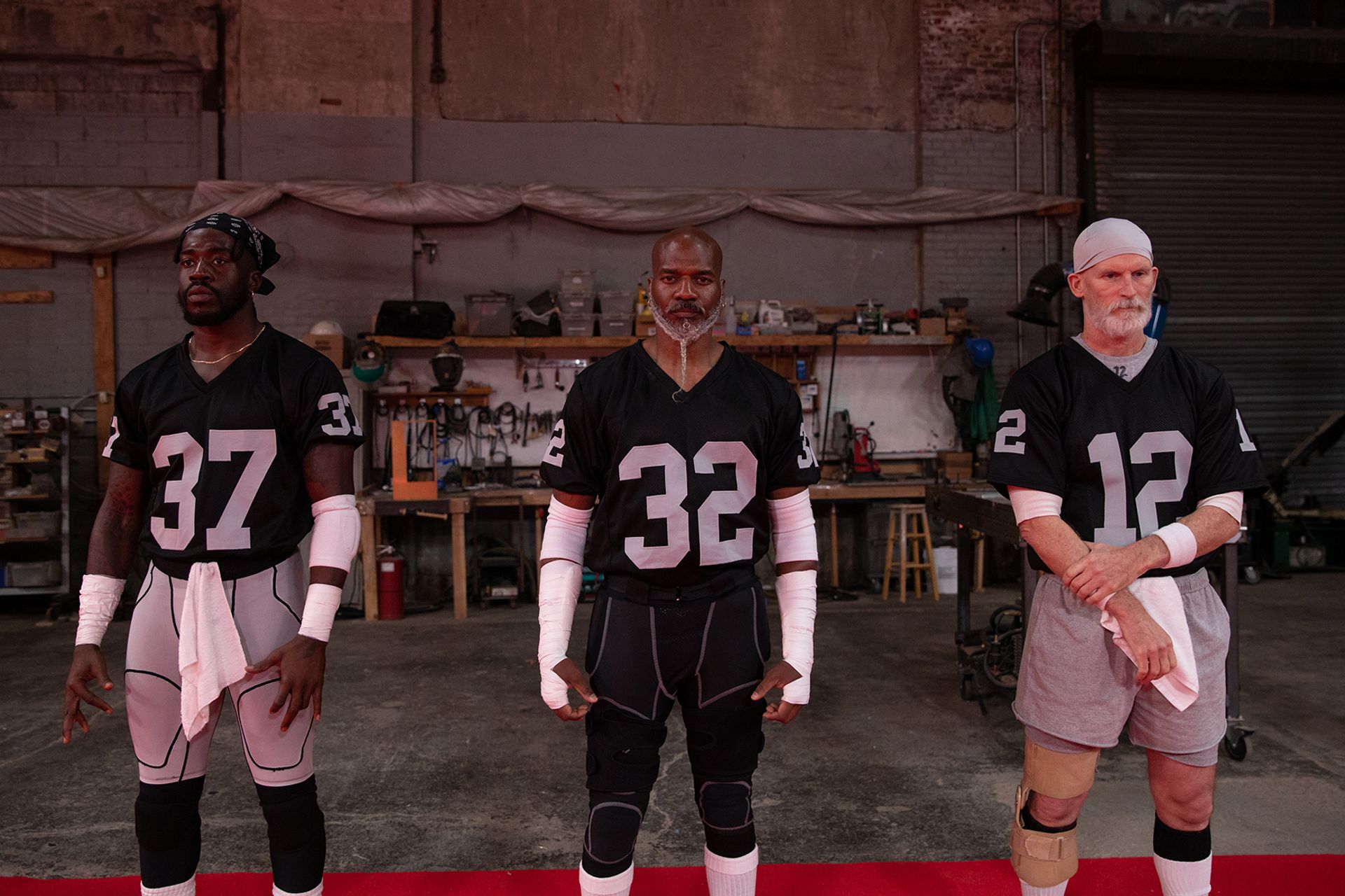 The Raiders team from left to right: Shamar Watt (Lester Hayes), Raphael Xavier (Jack Tatum), Matthew Barney (Ken Stabler). by Matthew Barney Secondary (2023)