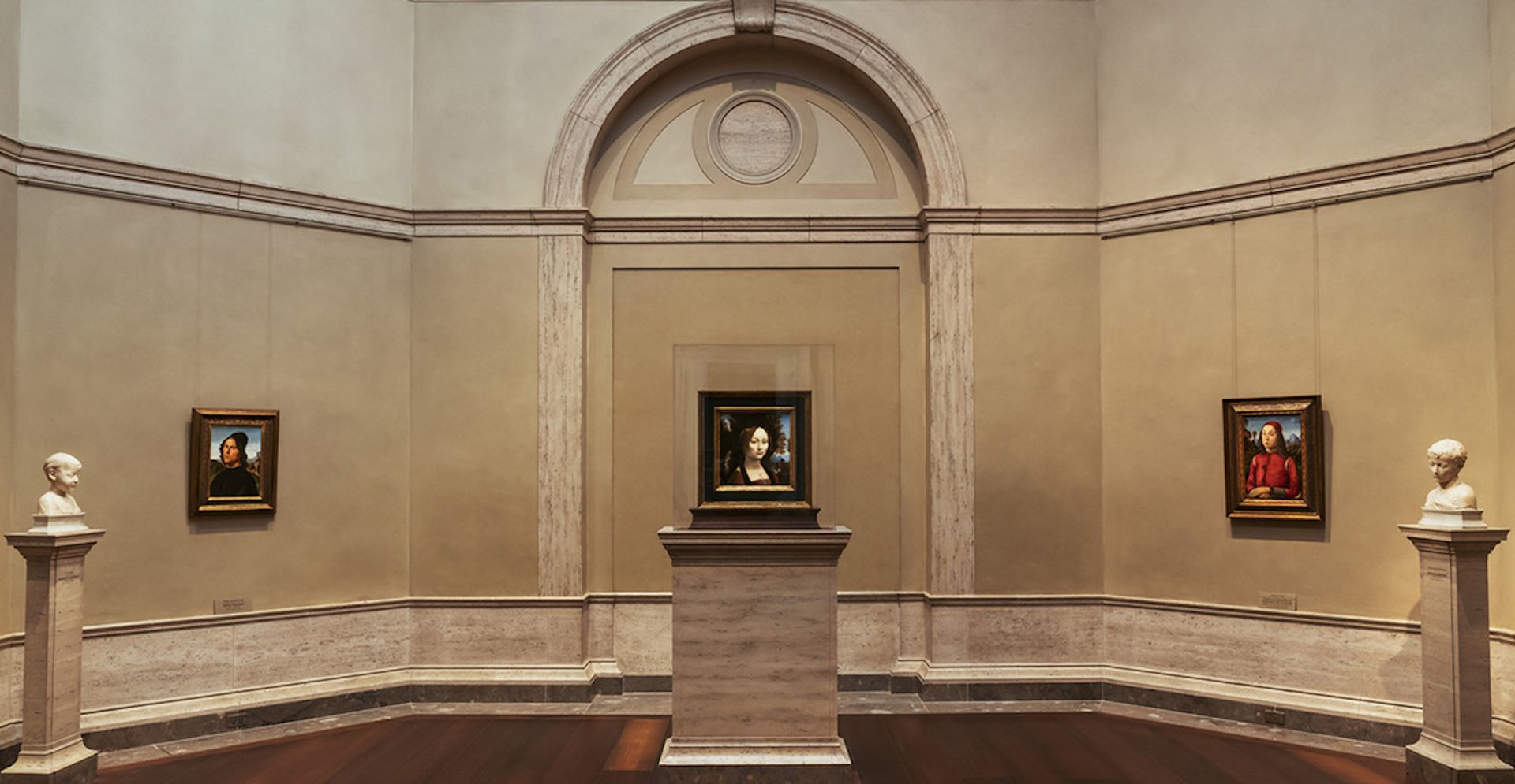 Installation view of Gallery Six on the ground floor of the National Gallery West Building with Leonardo da Vinci Ginevra de’ Benci Courtesy of National Gallery of Art, Washington, DC