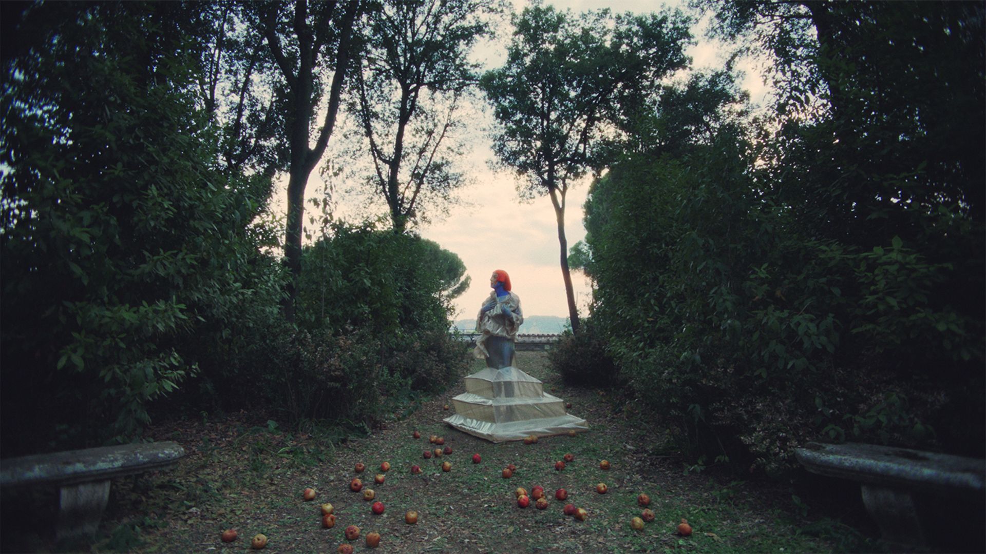 Shot in Rome over four days, the film uses some of the Eternal City’s grandest sets, including the gardens of the Villa Medici. Among Sin’s many stylistic inspirations were 20th-century Italian filmmakers Dario Argento and Federico Fellini, who both directed famous works in the Italian capital. “Rome is not a city you can just bring your own story to,” Sin says. “It’s a city built on top of cities. Everywhere you turn there’s a monument of political gravity – art history is inescapable here.”